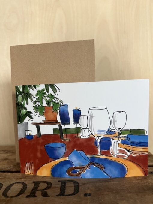 Dubbelgevouwen wenskaart met blanco binnenzijde.